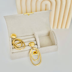 Les boucles d'oreilles "Delva" se distinguent par leur design géométrique en acier inoxydable doré. Elles se composent de plusieurs formes ovales superposées, offrant une structure élégante et moderne. Leur design minimaliste mais audacieux est parfait pour celles qui recherchent des pièces de joaillerie statement sans en faire trop.