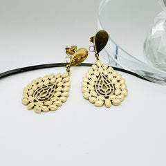 Les boucles d'oreilles "Belinda" sont une incarnation de l'élégance et de la sophistication. Avec leur design en forme de goutte délicatement ciselée, elles captent la lumière de manière exquise, créant un éclat subtil qui attire tous les regards. Ces boucles d'oreilles dorées, ornées de motifs en relief finement travaillés, sont le choix parfait pour les occasions spéciales où vous souhaitez vous démarquer avec grâce.