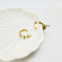 Les boucles d'oreilles "Mira" incarnent la modernité avec une touche de charme intemporel. Fabriquées en acier inoxydable doré, elles présentent une forme semi-circulaire avec des détails subtils de cristaux étincelants, qui ajoutent une touche de sophistication. La forme incurvée, associée aux ornements sertis, crée un design à la fois élégant et raffiné, parfait pour les occasions spéciales ou pour rehausser une tenue quotidienne.