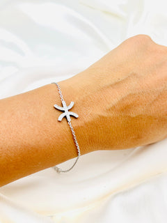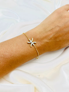 Le bracelet Amazir est un bijou délicat qui évoque la beauté simple et naturelle de la mer. Son charm en forme d’étoile de mer incrusté de cristaux scintillants capture la lumière à chaque mouvement, rappelant les doux reflets du soleil sur l'eau. Avec sa finesse et son éclat subtil, il est parfait pour apporter une touche de brillance discrète à votre poignet.