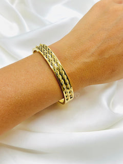Design : Bracelet rigide orné de torsades, ajoutant une texture unique et élégante