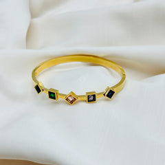 Design : Bracelet rigide avec des pierres précieuses multicolores en forme de carrés et de losanges