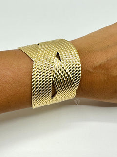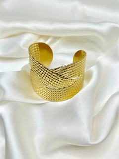 Design : Manchette large avec texture en relief pour un effet chic et moderne.