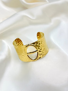 Découvrez le bracelet Delva de la collection Séduisante, un bijou remarquable qui combine élégance et caractère. Son design martelé unique et sa boucle centrale imposante en font une pièce audacieuse, idéale pour les femmes modernes et affirmées.