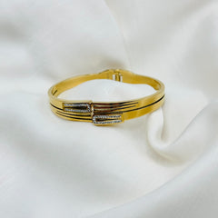 Design : Bracelet rigide avec un motif géométrique en ligne, agrémenté de deux éléments décoratifs sertis de cristaux.