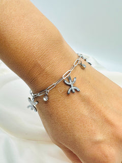 Le bracelet Rifia est une pièce captivante, avec ses pendentifs délicats en forme d’étoile ornés de cristaux étincelants. Il ajoute une touche de glamour discrète à toute tenue, évoquant la beauté naturelle des étoiles de mer et l'éclat des pierres précieuses. C'est un bijou parfait pour les moments où vous souhaitez briller tout en restant élégante et raffinée.