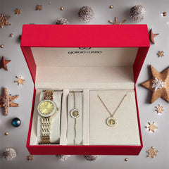 Ce magnifique coffret est composée d'un collier délicat, d'un bracelet élégante et d'une montre assorties.