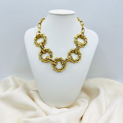 Le collier Diva est une déclaration de style et de confiance. Avec ses grands maillons torsadés dorés, ce bijou impose par sa présence et capture l'attention instantanément. Il est conçu pour les femmes qui aiment se démarquer avec élégance et une touche de luxe.