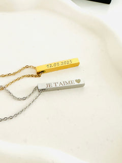 Collier avec pendentif: barrette à graver sur maximum 4 cotés (Pour graver plusieurs messages voir les autres annonces).