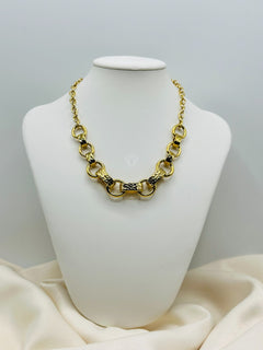 Le collier Mélia est une pièce audacieuse qui se distingue par son design unique et sa finition dorée. Les maillons larges et texturés apportent un mélange parfait de robustesse et d'élégance, rendant ce collier idéal pour les fashionistas qui n'ont pas peur de se démarquer.