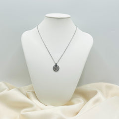 Le collier "Odyssé" se distingue par sa simplicité élégante et son design contemporain. Le pendentif rond, délicatement incrusté de petits cristaux scintillants, est suspendu à une fine chaîne en acier inoxydable.