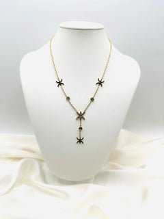 Le collier Rifi incarne l'élégance contemporaine avec une subtile inspiration marine. Orné de petits pendentifs en forme d'étoiles de mer, ce bijou apporte une touche de sophistication à votre décolleté. La disposition harmonieuse des étoiles et des cristaux étincelants fait de ce collier un choix idéal pour illuminer vos tenues, de jour comme de nuit.