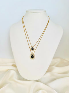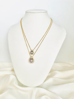 Le Collier Safira est une pièce élégante et délicate à double chaîne, idéale pour ajouter une touche de raffinement à votre tenue. Ses pendentifs en forme de goutte ornés de pierres scintillantes apportent une allure sophistiquée, tout en restant subtile. Ce collier superposé incarne l'harmonie entre modernité et féminité.